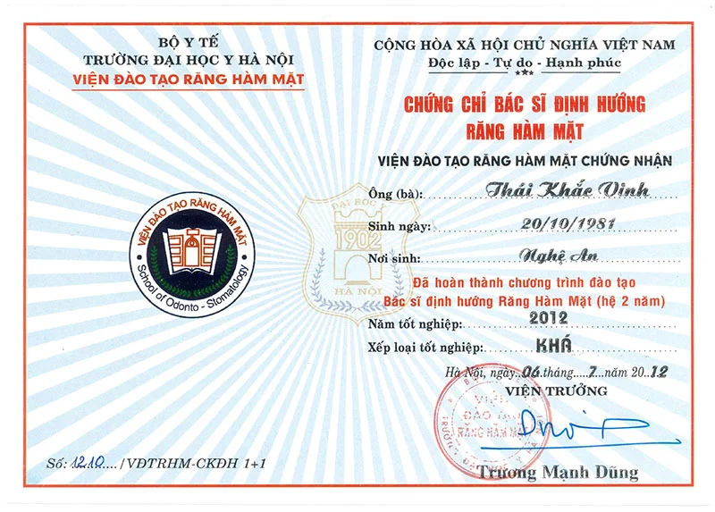 - Graduated with a Master’s degree in Dentistry from Hanoi Medical University.