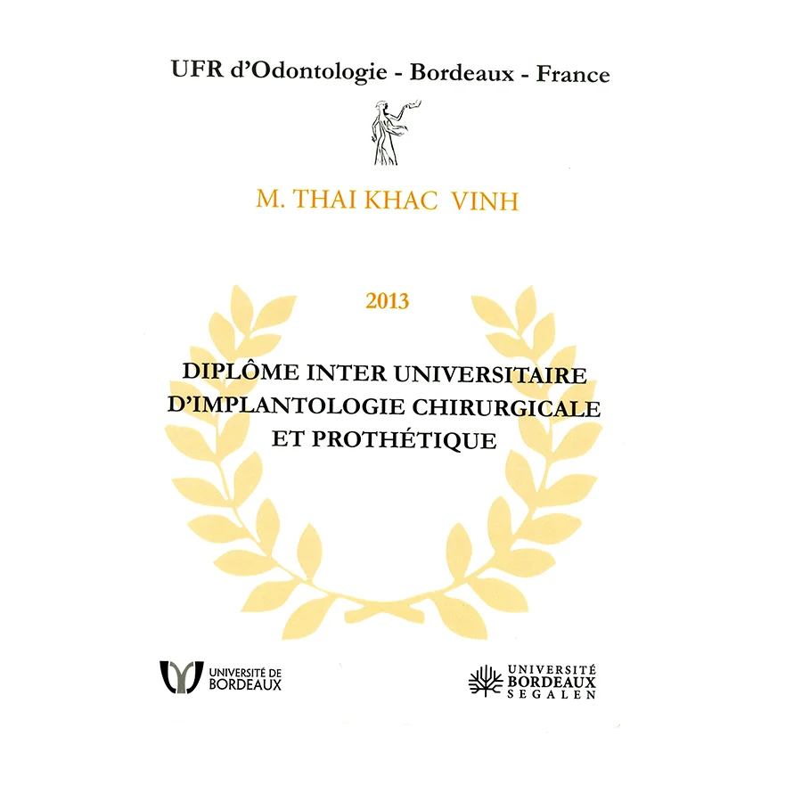 - Graduated from the University of Bordeaux (France) with a degree in Dental Implantology.